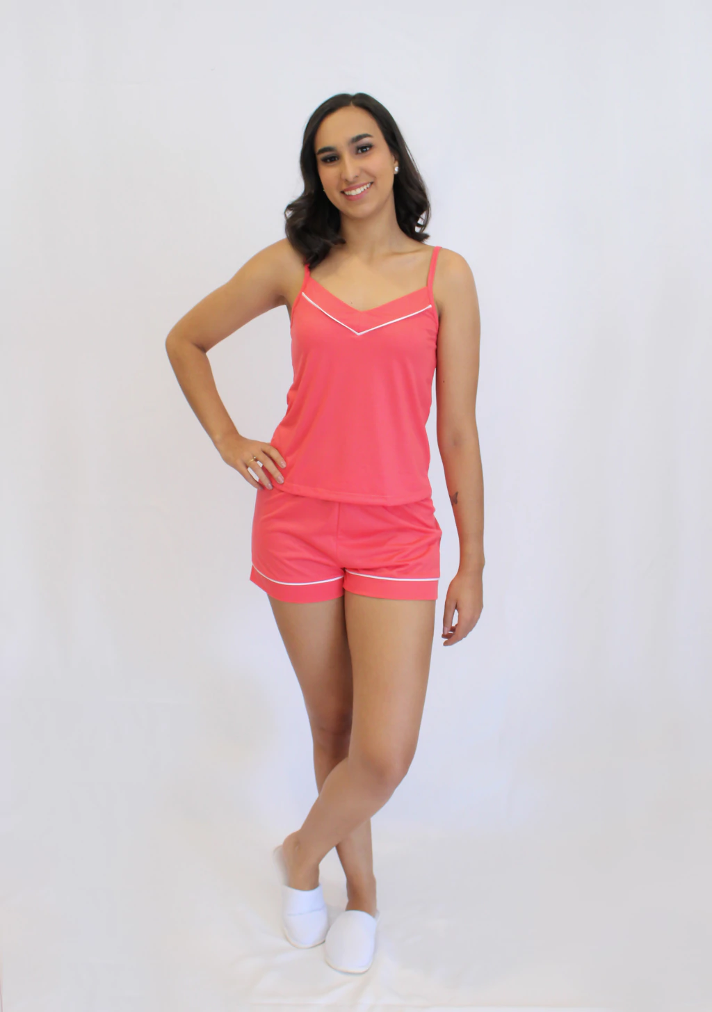 O pijama curto de alça é ideal para quem busca conforto e sofisticação. Com a sua estampa exclusiva e super especial.